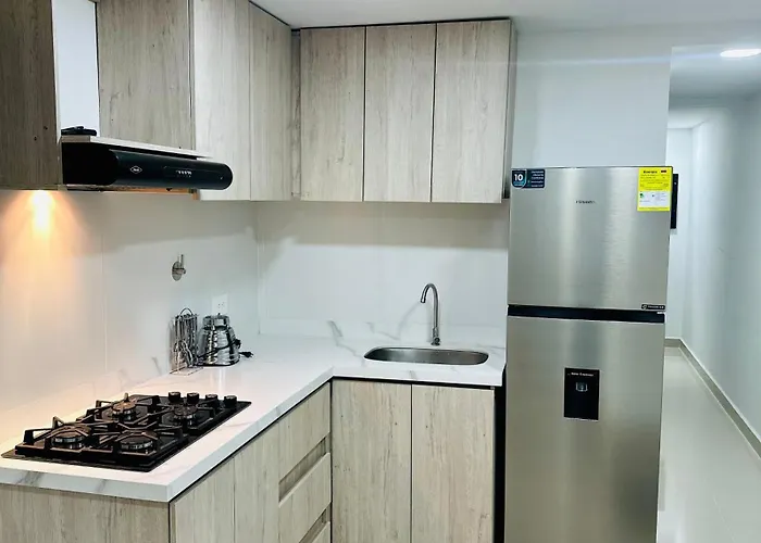この宿泊の設備の整った台所を利用して、おいしい自家製の食事を作ることができます。 Apartamento Balcon Laureles Estadio Ed Milagrosは スラメリカーナ地下鉄駅から徒歩で10分くらいの所にあります。